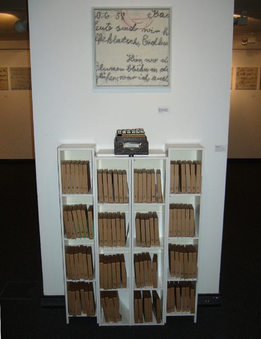 Die Begriffe entstammen den Texten der Ansichtskarten, die an Gerda S. adressiert und von ihr in einem großen Pappkarton gesammelt wurden. Die Sammlung umfasst Karten aus den Jahren 1947 bis 1998. Die kleinen Schachteln beinhalten Begriffe, die aus dem heutigen Sprachgebrauch allmählich verschwinden oder einen Bedeutungswandel erfahren haben.